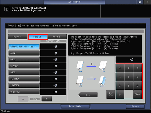 Select Fold 2, and then use the touch panel keypad to enter the set value.