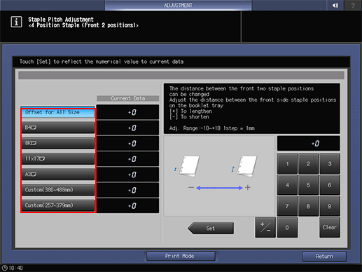 The screen returns to the Staple Pitch Adjustment Menu screen.