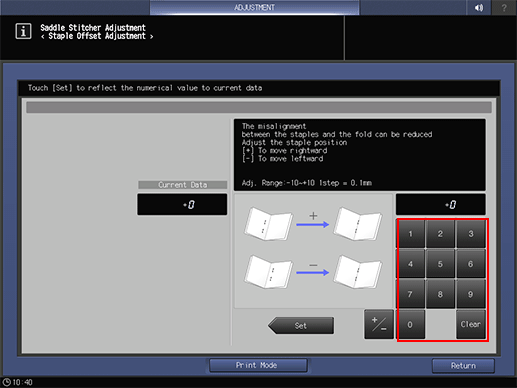 If any adjustment is required, use the touch panel keypad to enter the set value.
