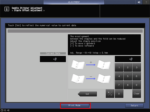 Press Exit PrintMode to return to the Staple Offset Adjustment screen.