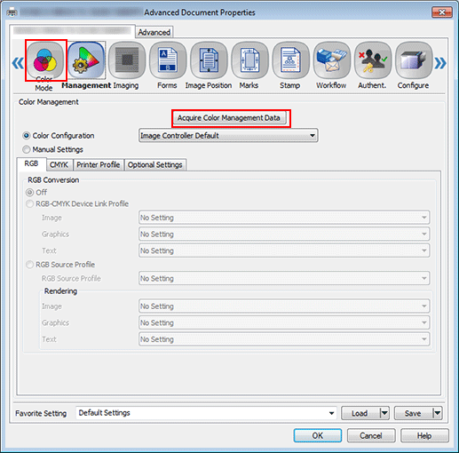 4. Click the Management tab, and then click Acquire Color Management Data.