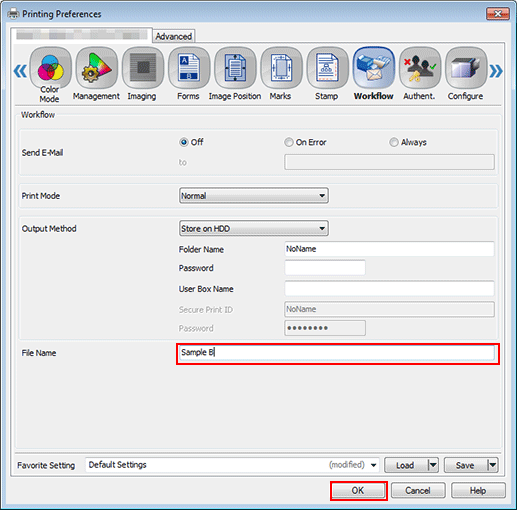 3. Click the Workflow tab, and then select Store on HDD in Output Method.