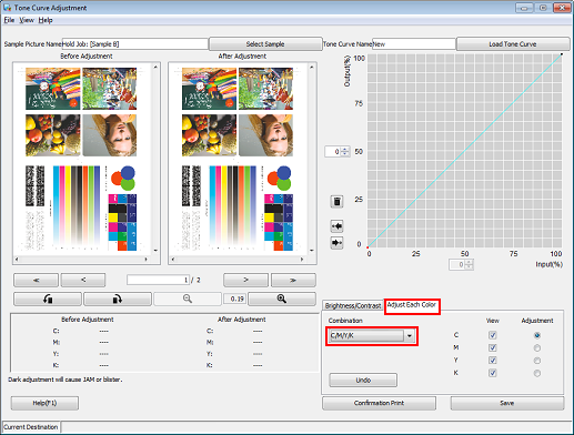 6. Click Adjust Each Color, and then select C/M/Y/K for Combination.