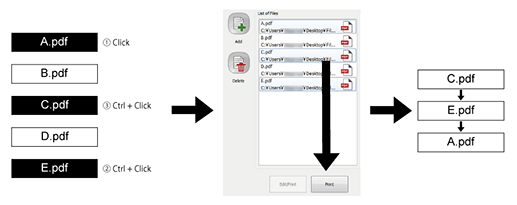 When the file list of AccurioPro Hot Folder is selected, files are output in the order in which they are selected.