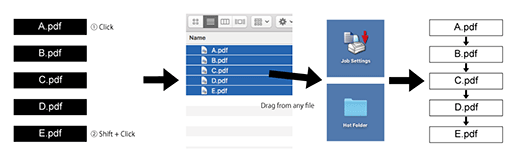 When a hot folder or the desktop icon is selected, files are output sequentially from the selected file at the top.