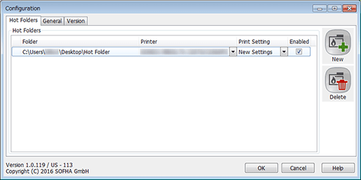 You can select New or Delete to set a folder to a hot folder or reset a folder from a hot folder.