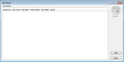 This screen displays the history of print jobs that are processed using AccurioPro Hot Folder.