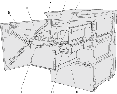 7 | Knob [IQ5] | Turned to allow removal of paper jam. |