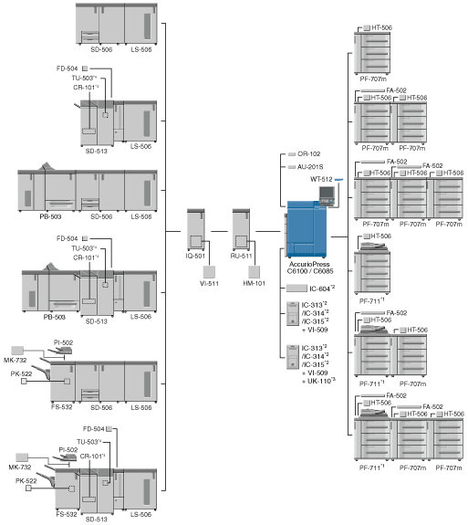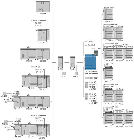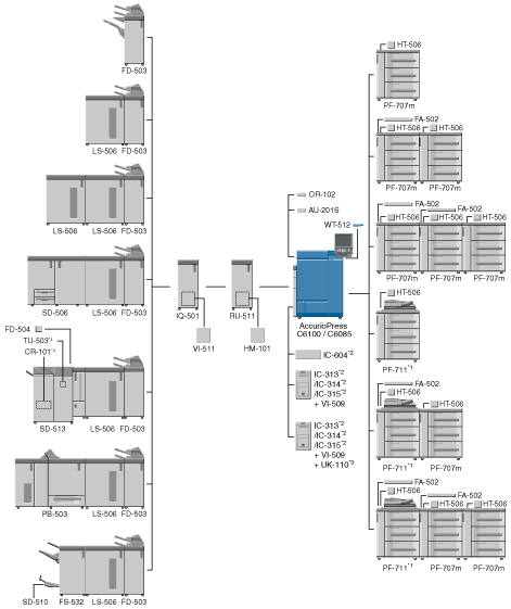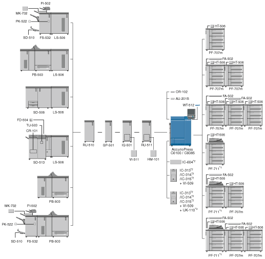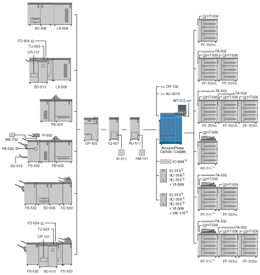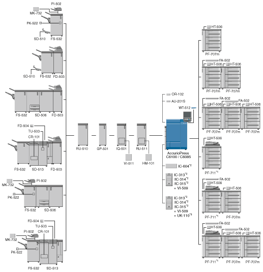 *3: When using Paper Feed Unit PF-711 while Image Controller IC-313, Image Controller IC-314, or Image Controller IC-315 is mounted on the machine, always mount Upgrade Kit UK-110.