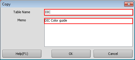 Up to 31 one-byte characters can be entered to Table Name. Up to 64 one-byte characters (32 two-byte characters) can be entered to Memo.
