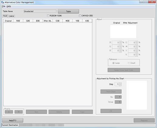 Table | Displays the Alternative Color Table Management screen. Select an alternative color table. | |
