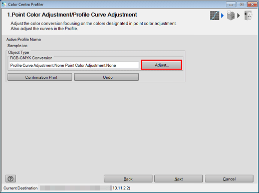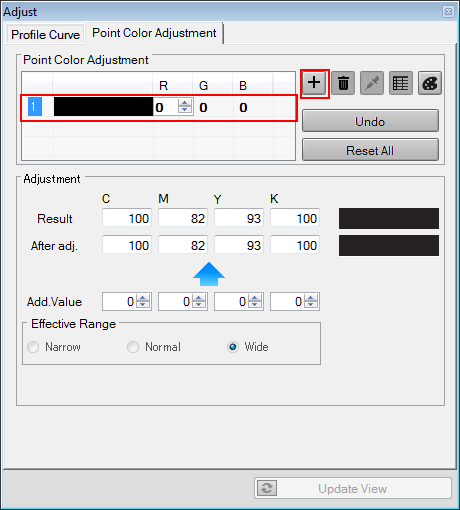 The Adjust screen closes, and the screen returns to the Point Color Adjustment/Profile Curve Adjustment screen.