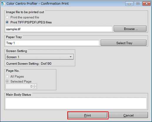 supplementary explanationFrom Screen Setting, select the screen setting used by confirmation printing.