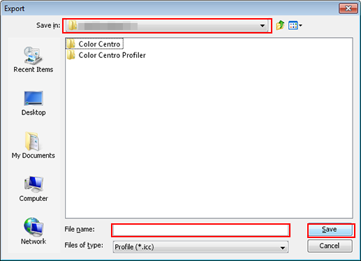 You can export a CMYK-CMYK device link profile of the image controller to Local, My Documents, or Network.