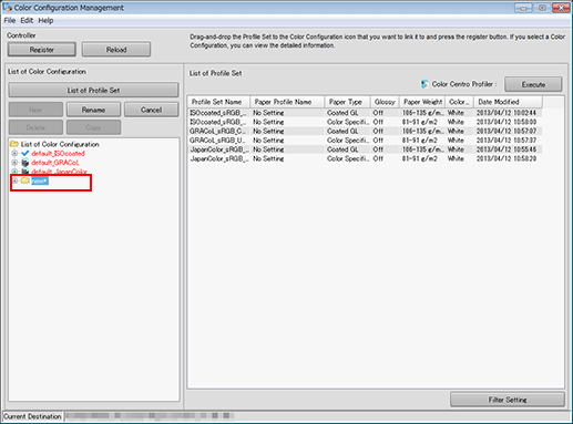 3. From the profile set list, drag and drop the profile set you want to use to the Color Configuration icon.