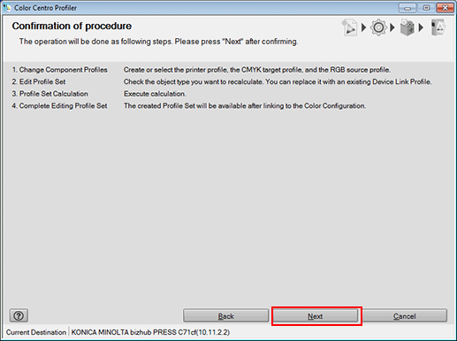 A wizard is started and the Confirmation of procedure screen is displayed.