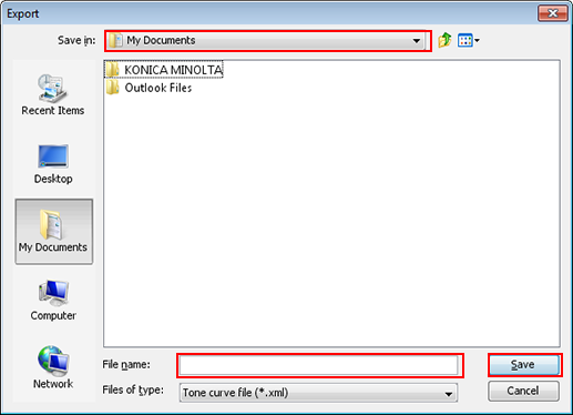 You can export a tone curve of the image controller to Local, My Documents, or Network as a profile (Extension: .xml).