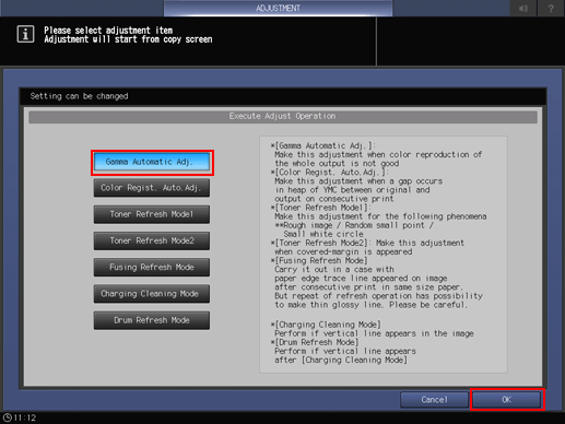 3. Press Gamma Automatic Adj. and press OK.