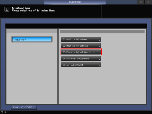 2. Press Execute Adjust Operation on the Adjustment Menu screen.