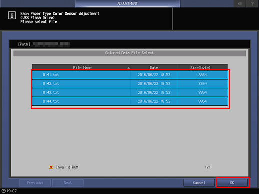 Multiple files corresponding the checking chart are selected at a time. (You cannot select the files individually.)