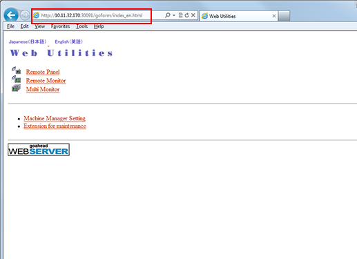 In the URL field, enter "http://IP address of the machine (or the host name):30091" and press the Enter key.