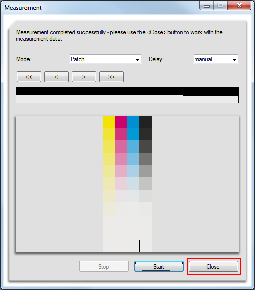 Continuously, place the spectrophotometer on the next right patch, and press the button for the spectrophotometer. Measure all the patches in the same operation.