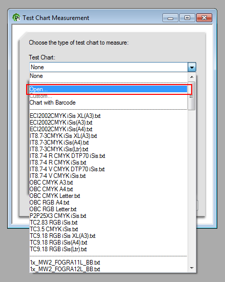 When Intelligent Quality Optimizer IQ-501 is not mounted on this machine, chart color measurement is required in the external spectrophotometer (i1-Pro, i1-Pro2 and i1-iSisXL, or FD-5 BT and FD-9).