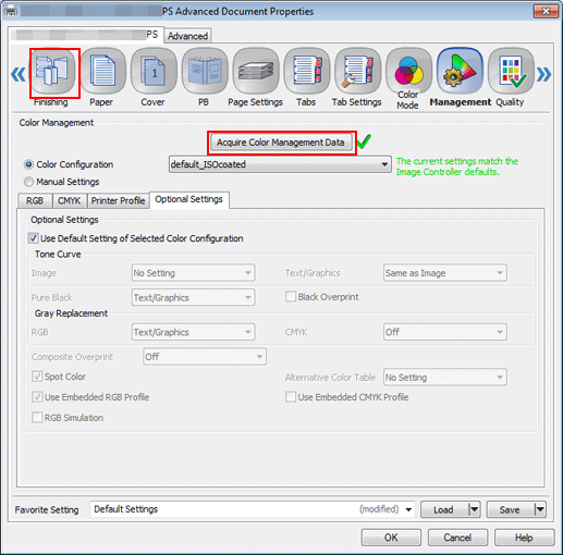 3. Click the Management tab, and then click Acquire Color Management Data.
