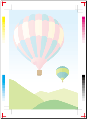 This function automatically prints adjustment crop mark and gradation patch in the trim margin.