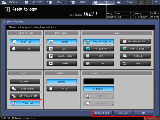 With z-folded originals loaded in the ADF, the size detection sensor may not function properly due to the floaty original. To detect the correct size while scanning the original, set this mode.