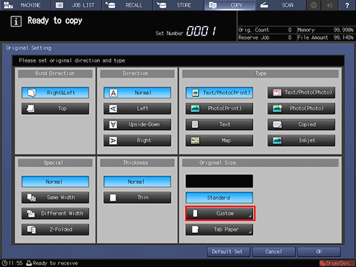 preconditionCustom sizes can be registered. Registered size information can be utilized later for both original and copy paper size settings.