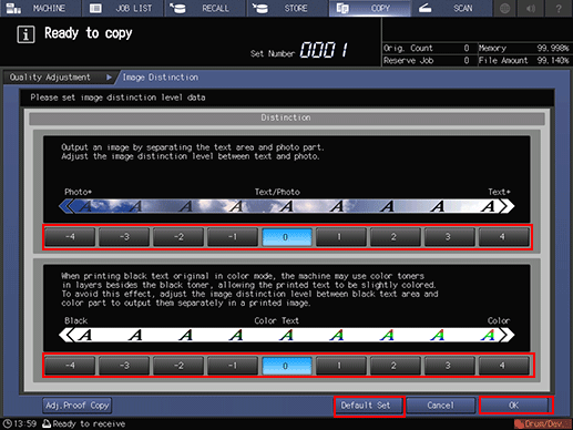 Select one from 1 to 4 under Text/Photo to increase the proportion of text in Text/Photo detection.