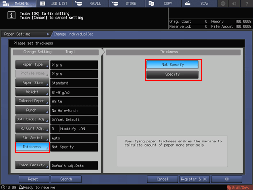 supplementary explanationThickness is displayed when Image Controller IC-604 is mounted.