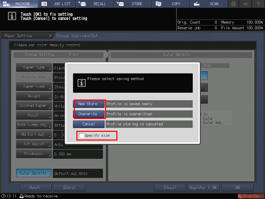 supplementary explanationIf Overwrite is selected, data is overwritten by the registered paper condition.