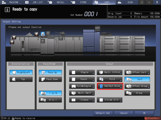 Press Output Setting and Perfect Bind in sequence.