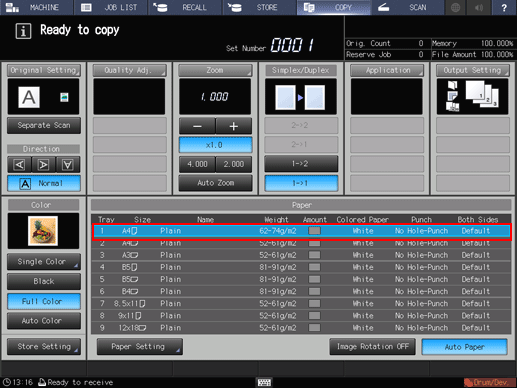 supplementary explanationPaper setting for covers is also available from the MACHINE screen or COPY screen. Perform the paper setting procedure after step 4, if desired.