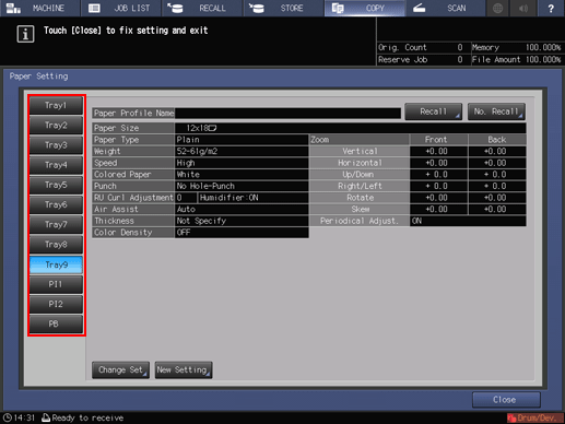 Press Change Paper Setting.