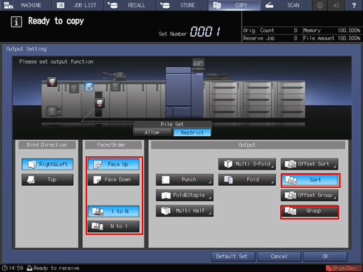Select the desired Face (Face Up or Face Down) and Order (1 to N or N to 1), as needed.
