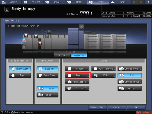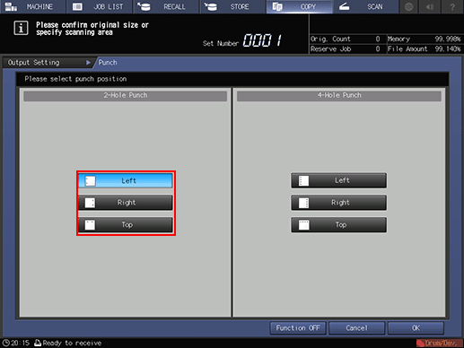 • preconditionPunch mode is unavailable for paper sizes other than standard (Detect Size Setting, Custom, Tab paper).