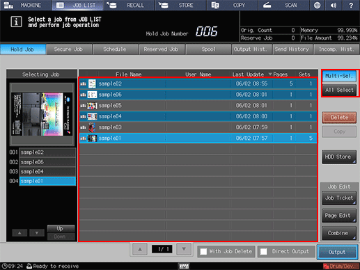 • supplementary explanationPress Multi-Sel. first to select multiple jobs.