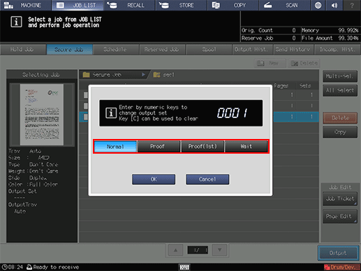 • supplementary explanationSelect one output method from Normal, Proof, Proof(1st) and Wait.