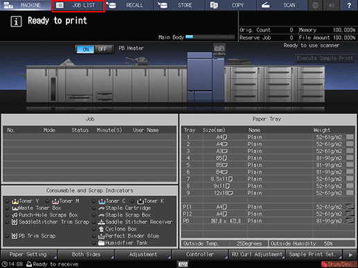supplementary explanationFor details about the icons displayed in the list, refer to [Hold Job] Screen.