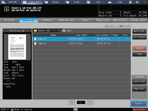 • supplementary explanationFor details about the icons displayed in the list, refer to [Hold Job] Screen.