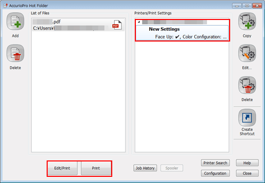 1. Select a printer or job setting, then click Edit/Print or Print.