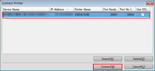 You can also connect by double-clicking the line of printers on the list of Job Centro.