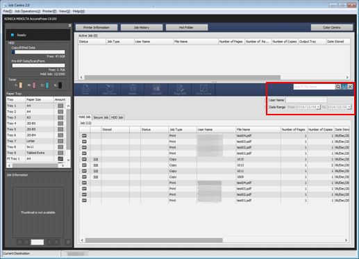 supplementary explanationSwitching the tab between Hold Job, Secure Job, and HDD Job clears the search results.