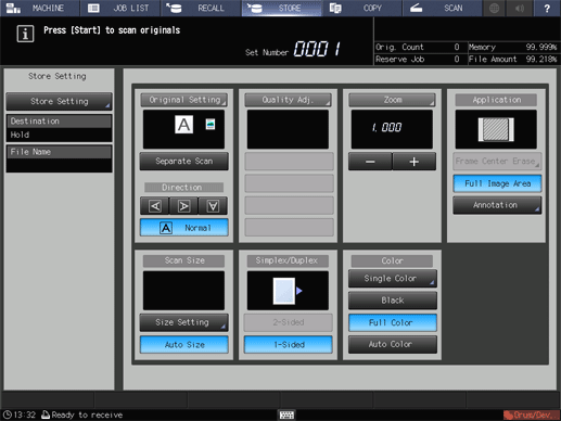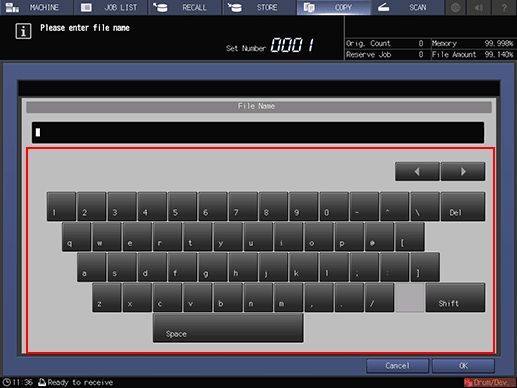 Press File Name on the Store Setting screen to display the File Name dialog box, enter the file name, then press OK.