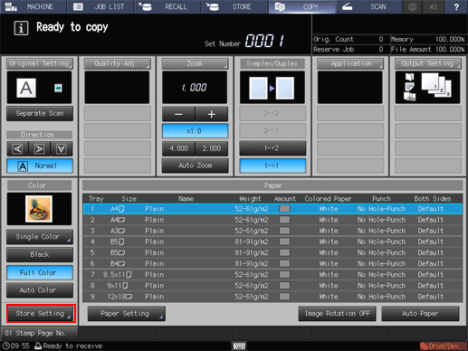 The screen returns to the COPY screen. The message Press [Start] to scan originals is displayed in the message area.
