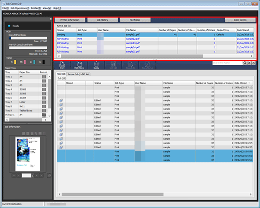 If a job not to be stored is moved from the Active Job list to the Hold Job list, it cannot be edited using Job Centro or PageScope Web Connection.