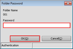 • supplementary explanationIf selecting the folder where password protection is set, enter the password in the following screen to be displayed, and click OK.
